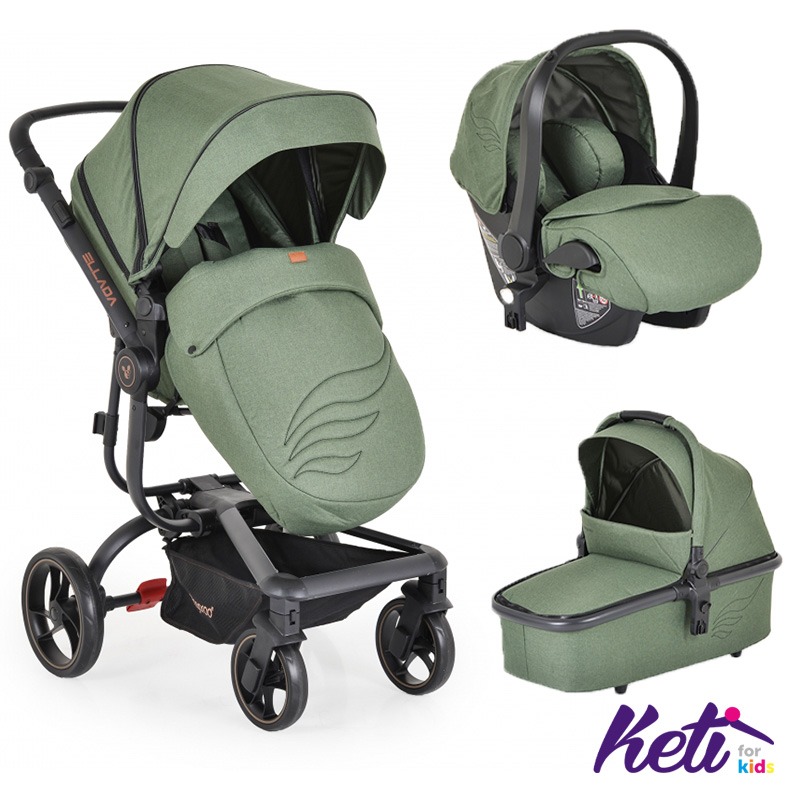 CANGAROO Set 3 u 1 kolica ELLADA (MASLINASTO ZELENA)